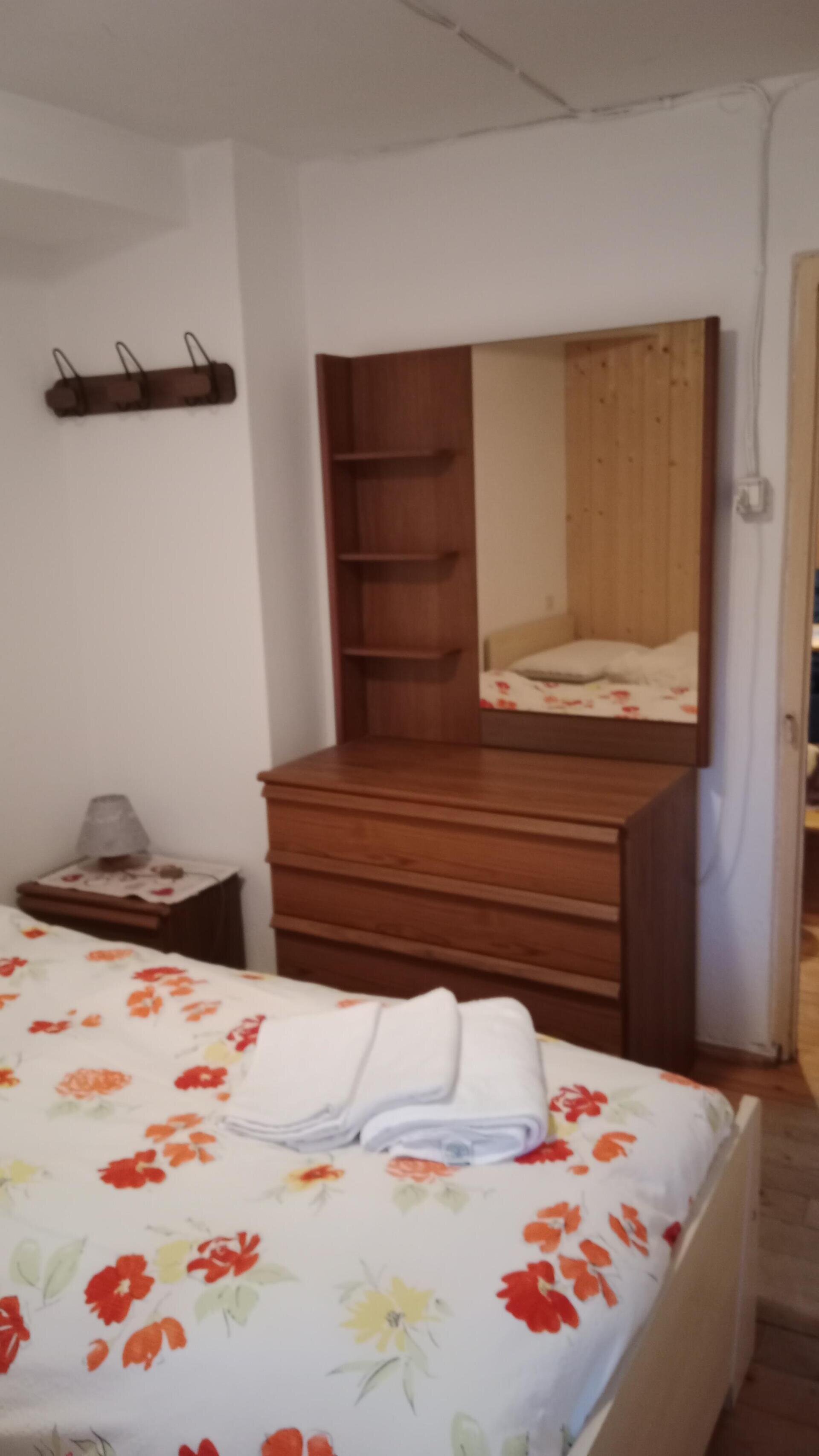 Apartment with balcony located on the raised ground floor consisting of a kitchen, 2 bedrooms each with 2 beds, 1 living room with a sofa bed, and 1 bathroom. ...Our apartment is equipped with a washing machine, iron, dishwasher, microwave, TV, hairdryer.... Free private parking in the courtyard in front of the house and independent entrance. Please kindly inform in advance of your arrival time. Check-in after 2 PM, check-out by 9 AM. Free WiFi. Bedding and towels provided in the price.